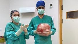 Karnından 8,5 kiloluk kitle çıkarıldı