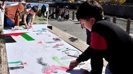 Iğdır Millet Bahçesi’nde gerçekleştirilen etkinliğe ise Vali Ercan Turan, kurum müdürleri, vakıf gönüllüleri ve çok sayıda kişi katıldı. Katılımcılar, yaklaşık 200 metrelik rulo kağıt üzerinde Filistinli çocukların hayallerini resmetti. Etkinliğe gelen çocuklar da yere serilen kağıda Filistin bayrakları çizdi, renkli boyalarla destek mesajları yazdı. Ayrıca çocukların yaptığı kağıt gemiler, etkinlik sonunda millet bahçesindeki göle bırakıldı.