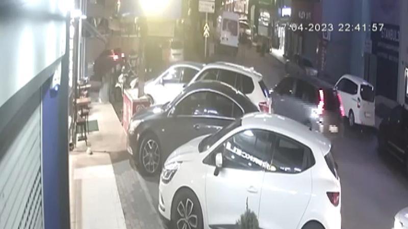 Olayla ilgili güvenlik kamerası görüntüleri ortaya çıktı. Görüntülerde otomobilin direğe vurduğu anlar ve silah seslerini duyanların kaçtığı anlar görülüyor.