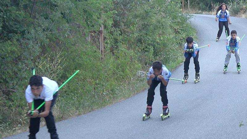 Türkiye şampiyonluğu bulunduğunu belirten kayaklı koşu sporcusu Hasan Hüseyin Şuvak, 40 derece sıcakta çalışmanın zorlu olduğunu söyledi. Tekerlekli patenlerle antrenman yaptıklarını ifade eden Şuvak, antrenmanların yaz kış devam ettiğini bildirdi.