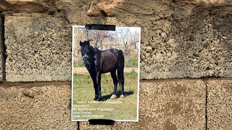 32 yıldır çiftçilik yapan Seyfullah Kasımoğlu, 2 yıl önce yeğeni için atı satın aldığını söyleyerek, "Atı 2 yıl önce yeğenim Ömer Han Kasımoğlu'na almıştık. Bahçede otlatmaya bıraktığımız 'Yağız' adını verdiğimiz atımız, 3 gündür kayıp ve aramadığımız yer kalmadı. Ben de çareyi atın resimleri ve telefon numaramı yazıp kayıp afişleri bastırdım. Bu afişleri mahallede bulunan duvar ve direklere yapıştırdım. Yeğenim Ömer çok üzülüyor. Yağız’ı bulup getirene ödül vereceğim" dedi.