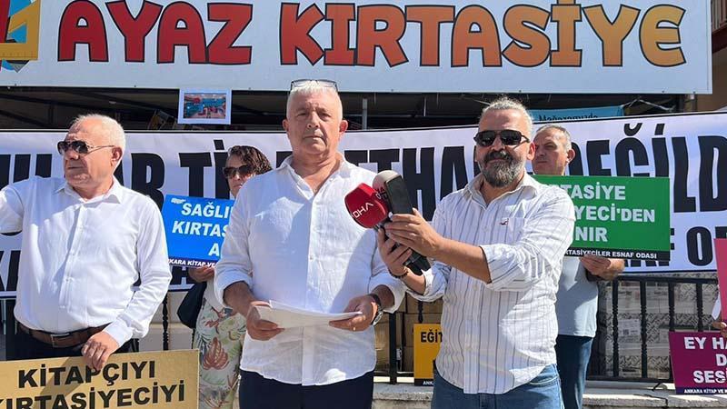 Ankara Kitap ve Kırtasiyeciler Esnaf Odası üyeleri, Altındağ ilçesinde bulunan bir kırtasiye önünde bir ayara geldi. 'Kırtasiye kırtasiyeciden alınır', 'Okul açılınca herkes kırtasiyeci', 'Biz ne satacağız' yazılı pankart ve dövizleri taşıyan grup adına basın açıklamasını Oda Başkanı Müslüm Küçükarzuman yaptı. Küçükarzuman, zincir marketlerde kırtasiye ürünü satılmasına karşı olduklarını söyleyerek, "Zincir marketlerde ve süpermarketlerde halen satışlar yapılıyor. Bu da okul açılma döneminde kırtasiyecilerin hiçbirinin iş yapamaması demek. Ticaret hayatımızı ve normal hayatımızı idame ettirememek anlamına geliyor. Meclis'te bekleyen Perakende Satış Yasası var. Aşağı yukarı 10 senedir bekliyor. Ne demek bu? Bunu çıkarırsanız herkes her şeyi satamayacak. Her dükkan istediği her şeyi satamaz. Bugün zincir marketler bizim gibi 22 tane iş kolunu mahvetmektedir. Çökertiyor, zayıflatıyor ve işsizler ordusu yaratıyor. Bunun kesinlikle önüne geçilmesi gerekiyor. Bir kere kırtasiye ve kırtasiye ürünlerinde yüzde 20 olan KDV oranımızın sıfırlanmasını istiyoruz. Çünkü her sene Türkiye'de 20 milyon öğrenci eylül ayında okula başlıyor. Bu çocukların hepsi alışveriş yapıyor. Çoğu da dar gelirli, asgari ücretle geçinen ailelerin çocukları. Yüzde 20 daha fazlasına alıyorlar" ifadelerini kullandı.