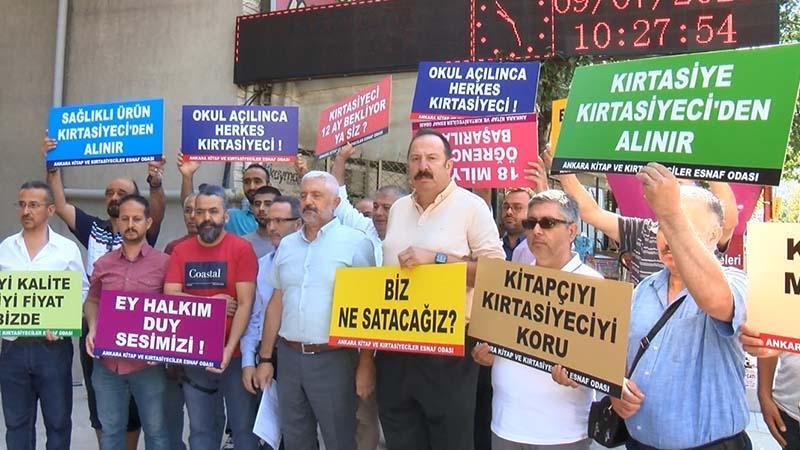 01:02Avcılar'da eve uyuşturucu operasyonu; 601 bin uyuşturucu hap ele geçirildiAnkara Kitap ve Kırtasiyeciler Esnaf Odası üyeleri, Altındağ ilçesinde kırtasiye önünde toplanarak basın açıklaması yaptı. Kırtasiyeci esnafı 'Kırtasiye kırtasiyeciden alınır', 'Okul açılınca herkes kırtasiyeci', 'Biz ne satacağız' yazılı dövizlerle tepkilerini gösterdi. Oda Başkanı Müslüm Küçükarzuman, zincir marketlerde kırtasiye ürünü satılmasına karşı olduklarını söyleyerek, "Marketler satıyor, bakkal, manav, kasap herkes kırtasiye satıyor; fakat kırtasiyeciler kırtasiye satamıyor. Marketlerden kırtasiye ve kırtasiye ürünlerini çıkaralım. Çünkü bizi oldukça zorluyorlar. Biz zaten küçük esnafız. Sigortamızı yatıramıyoruz. Borçlarımızı ödeyemiyoruz. Ankara'da Ankara Kitap ve Kırtasiyeciler Esnaf Odası olarak, 2 bin üyeye sahibiz. Toplam 4 bine yakın kırtasiyeciyiz biz, dükkan sayısı olarak. Ankara'nın yüzde 20'si bu işten ekmek yiyor; ama gel görelim bizim dışımızda herkes kırtasiye satıyor. Buna bir çare bulunmasını istiyoruz" dedi.