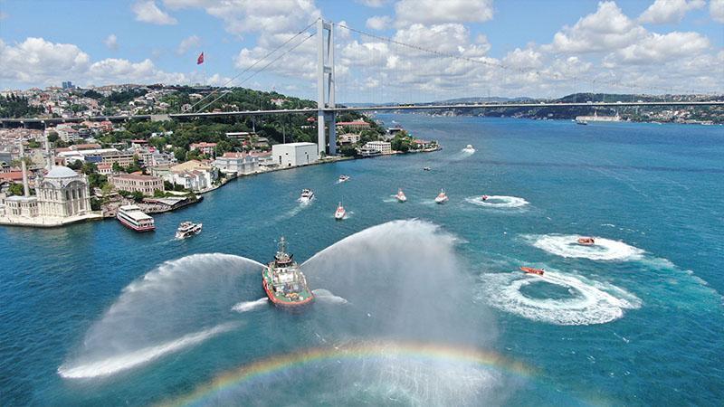 Kıyı Emniyeti Genel Müdürlüğü, 15 Temmuz Demokrasi ve Milli Birlik Günü'nde şehit ve gaziler anısına deniz araçlarıyla İstanbul Boğazı'nda saygı seyri düzenledi.
