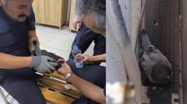 Klima boşluğunda mahsur kalan güvercini itfaiye kurtardı