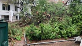 Ekiplerin devrilen ağacı kaldırma çalışmaları sürüyor.