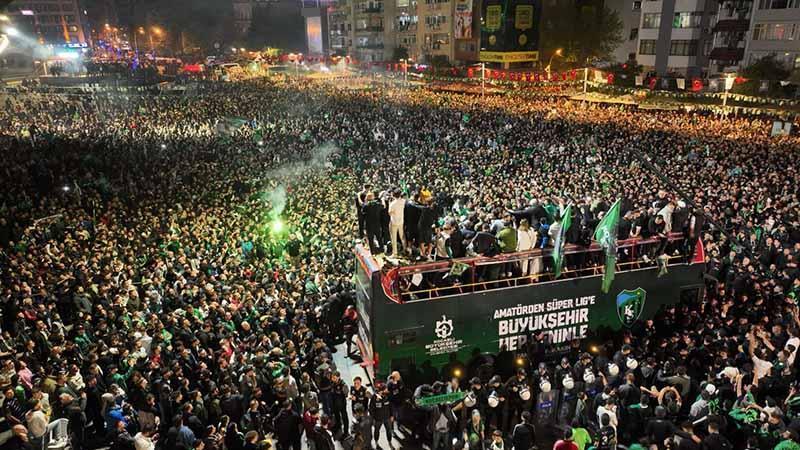 05:57İnşaat ustası babasının yaptığı eski Edirne evlerini, rölyefle buluşturduKocaelispor, dün Boluspor’un Fatih Karagümrük’ü 1-0 mağlup etmesinin ardından 16 yıl sonra Süper Lig’e yükselmeyi matematiksel olarak garantiledi. Bugün konuk olduğu Esenler Erokspor’a 3-1 yenilen yeşil-siyahlılar, maçın ardından 16 yıl sonra yükseldikleri Süper Lig’i kutlamak için Kocaeli'ye geldi. Takımı ve yöneticilerinin bulunduğu otobüsü Kocaeli Valisi İlhami Aktaş, Kocaeli Büyükşehir Belediye Başkanı Tahir Büyükakın TEM Otoyolu İzmit geçişi Kuruçeşme gişelerde karşılarken takım, beraberindekilerle İzmit Kent Meydanı’na gelerek taraftarla buluştu. Takım ve beraberindekiler Süper Lig’e çıkmanın coşkusunu meydanda birlikte yaşadı.