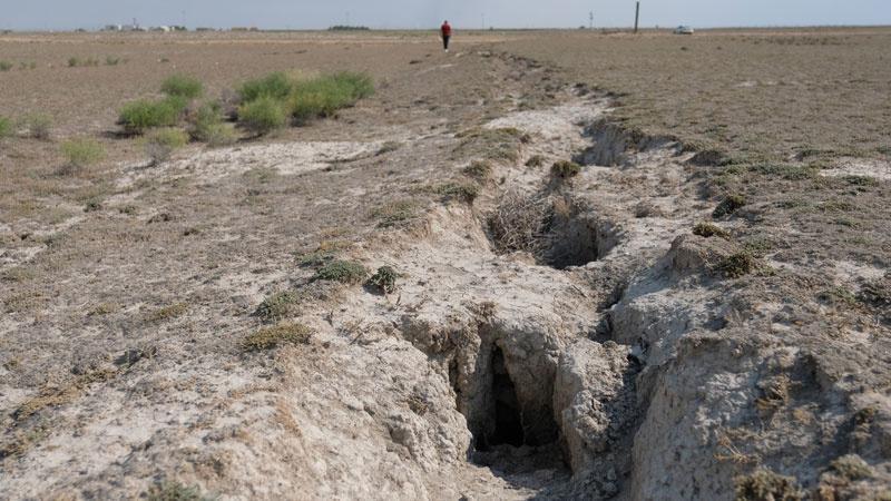 04:02Konya Havzası, her yıl 10 santimetre çöküyorKonya'da kuraklık, iklim değişikliği ve bilinçsiz tarımsal sulama nedeniyle yer altı su seviyesinin her geçen gün azalması, ovada obukların yanı sıra yüzey yarıklarının sayısını da artırıyor. Bununla birlikte havzanın bazı kesimlerinde her yıl 10 santimetreye yakın düşey çökmeler oluşuyor. Jeoloji Mühendisleri Odası Konya Şube Başkanı Şükrü Arslan, Anadolu Levhasında oluşan Konya Havzası'ndaki genişlemeye bağlı olarak çökmelerin devam ettiğini belirterek şunları söyledi: