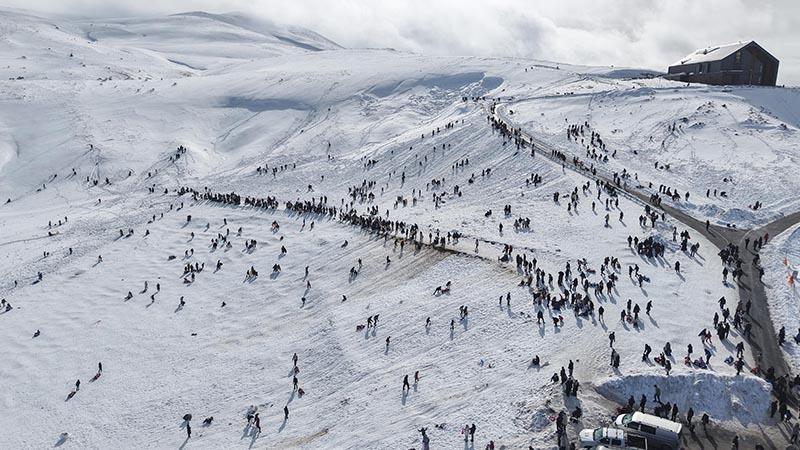 Kayak yapanlardan Mustafa Dişli, "İlk defa geliyoruz. Sömestir tatilinde çocuklarla beraber gelip, değerlendirelim dedik. Biz de çocuk olduk ve biz de kayıyoruz ve kayak keyfi yaşıyoruz" dedi. Kayak yapmaya ailecek geldiklerini belirten Selim Karamanlı ise Ailecek geldik. Burası çok güzel ve güzel bir merkez yapmışlar. Kızakla kayıyoruz" diye konuştu. Sini üzerine oturup, kayan İsa Yakarel, "Kalabalıktan kayacak yer kalmadı. Kızaklarımız da kalmadı. Araba da sini vardı. Biz de sininin üzerine oturup, kayıyoruz. Sini, kızaklardan hızlı kayıyor" dedi.