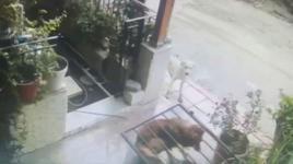 Samandağ ilçesi Cumhuriyet Mahallesi’nde 2 köpek, evin bahçesine girmek isterken demir kapıyı fark edip geri döndü. Geri dönen köpeklerden biri, başını kapının demirlerine sıkıştırdı. Kendini kurtarmak için çırpınan köpek, demir kapıyı yerinden söktü. Devrilen kapıdan başını kurtaran köpek, diğeriyle birlikte uzaklaştı. O anlar ise evin güvenlik kamerasına yansıdı. (DHA)