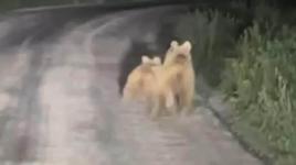Çanakkale'nin Bayramiç ilçesinde köy yoluna inen yavru ayılar, cep telefonuyla görüntülendi.