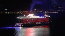 01:4362 yaşında Türk vatandaşlığına geçti, askere çağrıldıBahamalar bayraklı 277 metre boyunda 42 metre uzunluğundaki 2 bin 572 yolcu kapasiteli 'Resilient Lady' isimli kruvaziyer, dün saat 22.00 sıralarında Çanakkale Boğazı'ndan geçiş yaptı. Çanakkale önlerine ulaşan kruvaziyerin ışıkları, gövdesinde Türk bayrağı şeklini aldı. Türk bayrağı ile Çanakkale'yi selamlayan geminin boğaz geçişi ilgiyle izlendi.
