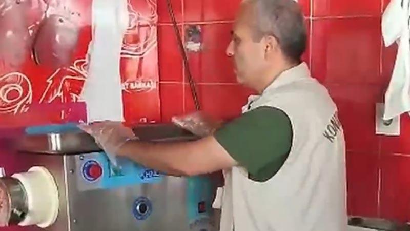 Şahinbey Belediyesi Zabıta ekiplerinin yaptığı denetimde, et satışı yapılan iş yerinde kıyma makinesindeki bir düzenekle tavuk taşlığı, çeşitli sakatatlar ve bozulmuş etlerin kıymaya karıştırılıp satıldığı tespit edildi. Şahinbey Zabıta Ekipleri ve Tarım Orman İl Müdürlüğü ekiplerinin yaptığı denetimlerde iş yeri muhafaza koşullarının uygun olmadığı, hijyen ve temizlik şartlarının sağlanmadığı, izlenebilirliği olmayan, son tüketim tarihi belli olmayan ve hangi hayvana ait olduğu bilinmeyen etlerin satışa sunulduğu tespit edildi.