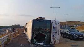 Kuzey Marmara Otoyolu'nda 4 kişinin öldüğü 26 kişinin yaralandığı otobüs kazası güvenlik kamerası tarafından kaydedildi. Güvenlik kamerası görüntülerinde otobüsün yan yatarak bir süre sürüklendiği, ardından da otoyolda savrulduğu anlar görülüyor.
