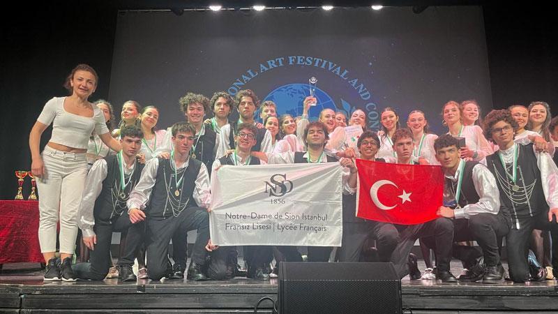 İtalya’da düzenlenen ‘Stelle di Roma’ Uluslararası Folklör, Dans ve Müzik Yarışması ve Festivali’nde İstanbul Özel Notre Dame de Sion Fransız Lisesi öğrencilerden oluşan 80 kişilik dans grubu, ‘Roma’nın yıldızları’ olarak adlandırılan büyük ödülün sahibi oldu.
