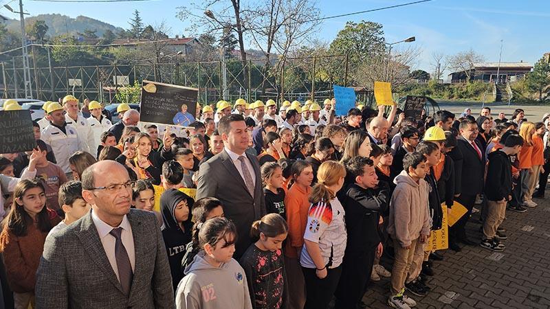Zonguldak’ta Türkiye Taşkömürü Kurumu’nda çalışan 54 madenci, 4 Aralık Dünya Madenciler Günü etkinlikleri kapsamında çocuklarını gittikleri okulda ziyaret etti. Çocuklar, babalarını anlamlı sözler yazan pankartlarla karşılayıp sarıldı.