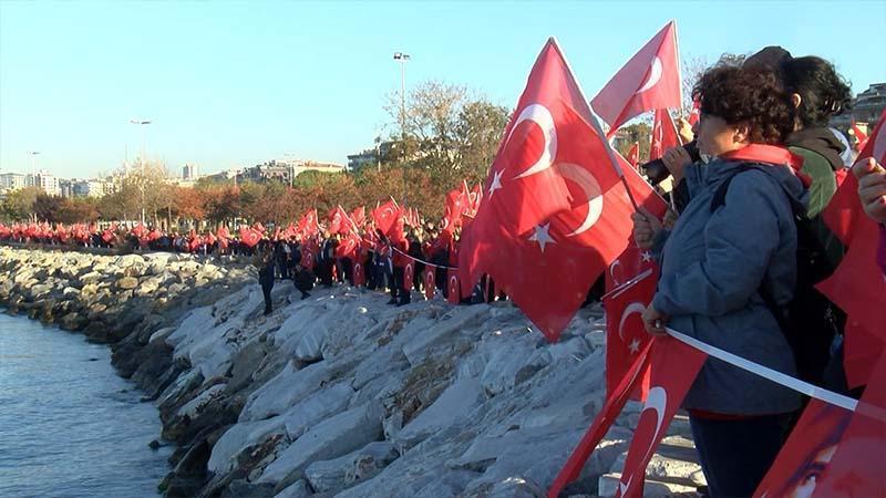 06:05Trafik kazası nedenlerinde 'sürücü kusuru' açık ara ilk sıradaGazi Mustafa Kemal'i ölümünün 84'üncü yıldönümünde anmak isteyen yüzlerce vatandaş saatler 09.05'i gösterdiğinde Maltepe Küçükyalı Sahili'nde bir araya geldi. Ellerindeki bayraklarla anma programına katılanlar metrelerce uzunlukta 'Ata'ya Saygı Zinciri' oluşturdu. 20 kişiden oluşan profesyonel dalgıçlar ise 'Ata'ya Saygı Dalışı' gerçekleştirdi. Dalgıçlar saat 09.05'te ellerinde Atatürk'ün gözlerinin olduğu pankart ve Türk Bayrağı ile su yüzüne çıkarak Ata'yı andı.