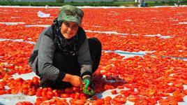 04:46Özel bakım merkezinde kalan engellinin darbedildiği iddiasıTürkiye'de sanayi tipi domates üretiminde 2'nci sırada yer alan, kurutulmuş domatesin de önemli merkezlerinden olan Manisa'nın Saruhanlı ve Turgutlu ilçelerinde hasat edilen ürünler, kurutulmak için tarlalara serilmeye başlandı. Kadın işçiler tarafından taze bir şekilde toplanarak, kasalara doldurulan domatesler, getirildiği sergi alanlarında yine kadınlar tarafından kesilerek, kurutulmaya bırakılıyor. Haftalar süren kurutulma işlemi ardından tesislerde işlenen domatesler daha sonra ihraç ediliyor. Geçen yıl Manisa'da 139 bin 968 dekar alanda ekilen domateslerden 11 bin tonu taze olarak, 5 bin 200 tonu oda kurutulmuş olarak ABD, Avustralya ve Avrupa ülkelerinin de aralarında olduğu 34 ülkeye ihraç edildi.