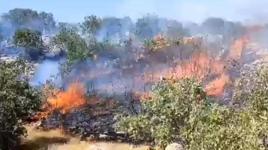 Nusaybin ilçesi kırsal İlkadım Mahallesi’ndeki ormanlık alanda çıkan örtü yangınına müdahale sürüyor. Yükselen yoğun dumanlar çevre mahallelerden de görülürken, bölgeye yönlendirilen Mardin Büyükşehir Belediyesi İtfaiye Daire Başkanlığı ve Orman İşletme Müdürlüğü ekipleri, yangına karadan çok sayıda araç ve personelle müdahale ediyor. Yangının yayılmasını engellemek amacıyla havadan da yangın söndürme teçhizatlı askeri helikopterler destek amacıyla bölgeye yönlendirildi. Söndürme çalışmaları havadan ve karadan yoğun şekilde sürdürülüyor.