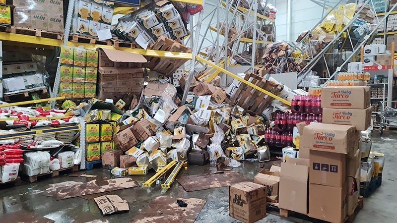 Düzce'de meydana gelen 5.9 büyüklüğündeki depremde, Fevzi Çakmak Mahallesi Bolu Caddesi'nde bulunan ve toptan satış yapılan maketin dev rafları devrildi. Markette büyük çapta hasar meydana geldi. Yüzlerce ürün, yerlere saçılırken, kullanılamaz hale geldi. Market çalışanları, depremin ardından temizlik çalışması başlattı.