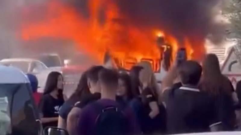 çıktı. Öğrenciler tahliye edilirken, araç kullanılamaz hale geldi.