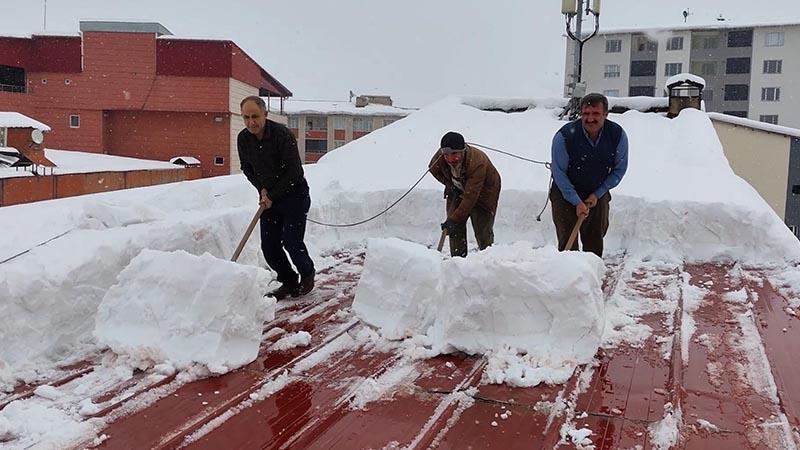 Muş’ta etkili olan yoğun kar yağışıyla birlikte halk arasında 'çatı temizleyicisi' olarak bilinen işçilerin zorlu mesaisi başladı. Metrelerce yükseklikte beline bağladıkları iplerle çalışan işçiler, çatıların üzerinde biriken karı temizleyerek hem ekmek parası kazanıyor hem de olası tehlikelerin önüne geçiyor.