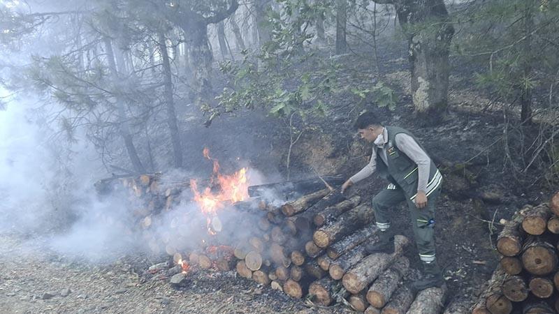 04:06Tartıştığı büfe çalışanını boğazından bıçaklayan sanığa 9 yıl 7 ay hapisMustafakemalpaşa ilçesi Alacaat Mahallesi’nde 2 Temmuz saat 12.30 sıralarında orman yangını çıktı. Alevlere havadan ve karadan, 1 insansız hava aracı (İHA), 1 helikopter, 6 arazöz, 2 su tankeri ve 46 personelle müdahale edildi. Kara ekiplerinin söndürme çalışmaları gece boyunca sürdü. Alevler 23 saat süren çalışmanın ardından söndürüldü.Mustafakemalpaşa Cumhuriyet Savcılığı’nın yürüttüğü soruşturma kapsamında İlçe Jandarma Komutanlığı ekipleri, yangına ilişkin 9 kişiyi gözaltına aldı. Yapılan incelemede, şüphelilerden Onur Akın’ın (26) kesim yaptığı motorlu testerenin egzozundan sıçrayan kıvılcımın yangına neden olduğu belirlendi. Jandarmadaki işlemlerinin ardından şüpheliler adliyeye sevk edildi. Şüphelilerden B.G. (16) savcılık ifadesinin ardından serbest bırakıldı. Nöbetçi mahkemeye çıkarılan şüphelilerden Onur Akın tutuklandı, H.A. (27), M.D. (22), Y.G. (30), H.D. (20), S.D. (25), K.G. (54) ve F.D. (26) ise adli kontrol şartıyla serbest bırakıldı.Olayla ilgili soruşturma sürüyor. (DHA)