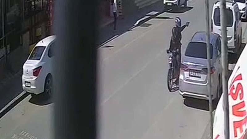 Motosikletli 2 kişinin iş yerine peş peşe ateş ettiği anlar bir iş yerinin güvenlik kamerasına yansıdı.
