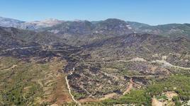 Alevlerin küle çevirdiği 3 bin hektarlık alan dron ile görüntülendi. Görüntülerde yemyeşil ormanların yerini siyah bir örtü kapladığı görüldü. (DHA)