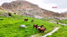 Doğa ve fotoğraf tutkunu Fatih Civan, Erzincan-Tunceli arasında bulunan 3 bin 300 rakımlı Munzur Dağları'nda özgürce dolaşan ve sayısı her geçen yıl artan yılkı atlarını dron ile kayıt altına aldı. Tarımda yaşanan makineleşme nedeniyle sahipleri tarafından serbest bırakılan atlar, Munzur Dağları'nda yaşıyor. Atların sürüler halinde otlaması, güzel görüntüler oluşturdu.