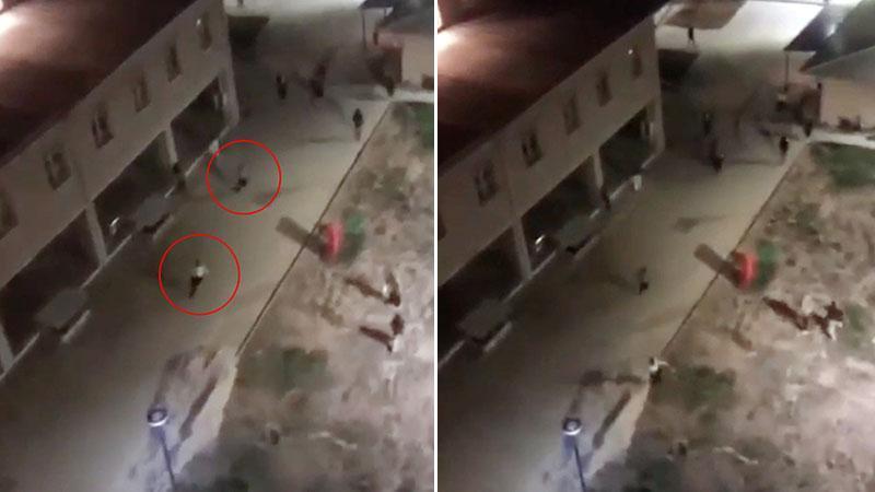 Bu arada olay, cep telefonu kamerasıyla görüntülendi. Görüntüde O.T.'nin, aşçı kıyafetli bir kişiyi kovaladığı görüldü. Çevredeki öğrencilerin korkuyla bağırdığı olaya güvenlik görevlileri müdahale ederken, "Sabaha çıkartmam seni. Sabah görmeyeceğim seni" diye bağrışlar duyuldu. Bir süre sonra O.T.'nin ikna edilerek uzaklaştırıldığı anlar da görüntülerde yer aldı.