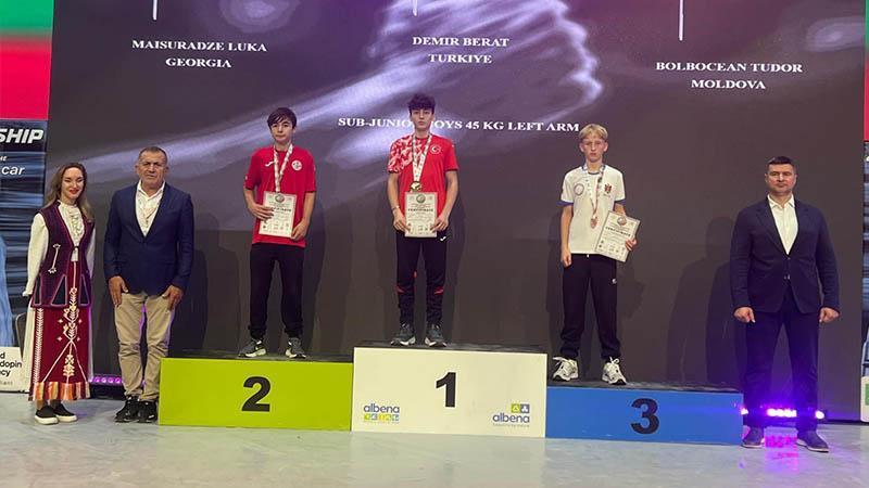 Bursa'da 10’uncu sınıf öğrencisi olan Berat Demir (15), ortaokuldayken beden eğitimi öğretmeni Nisan Uzun'un tavsiyesiyle başladığı bilek güreşi sporunda sol kolda dünya şampiyonu, sağ kolda dünya ikincisi oldu. Berat Demir, “Hedefim 2 kolda da dünya şampiyonu olmak. Sağ kolda heyecandan dolayı 2’nci oldum” dedi.