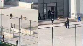 09:03Güngören'de 6 katlı binada patlamaOlay, Üçtutlar Mahallesi'nde bulunan Kocatepe İlkokulu’nda meydana geldi. Teneffüs saatinde okul bahçesine giren başıboş köpek, çocuklara doğru koştu. Bunun üzerine bazı öğrenciler korkarak okul binasına ve basketbol sahası alanına kaçtı. Bahçede görevli öğretmenler, öğrencileri okul binasına aldıktan sonra, köpeği okuldan uzaklaştırdı. Yaşananlar, bir vatandaş tarafından cep telefonuyla görüntülendi.