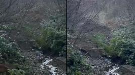 Görevliler, heyelan anını cep telefonu kamerasıyla kaydederken, yaşanan panik anları da görüntüye yansıdı. Görüntüde, görevlilerden birinin, "Aman aman, iyi ki kaçmışız. 5 dakika önce geçtik yahu oradan" dediği duyuldu.