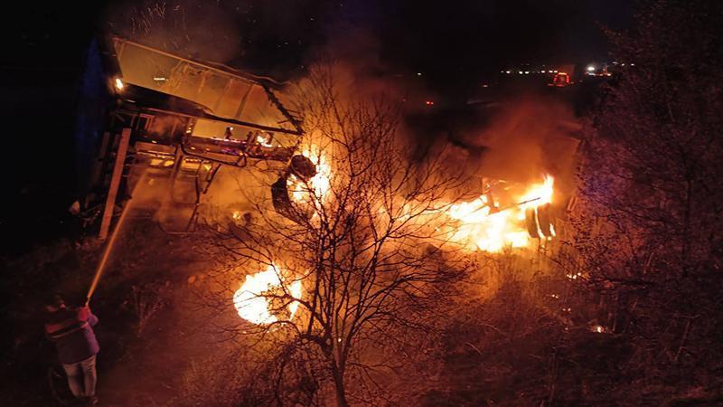 Olay, gece saatlerinde Anadolu Otoyolu'nun İstanbul istikameti Rüzgarlar mevkisinde meydana geldi. Sürücüsünün ismi öğrenilemeyen, alkollü içecek yüklü TIR'ın dorsesi, seyir sırasında yanmaya başladı. Alevleri fark eden sürücü, aracını yol kenarındaki refüje çıkarttı. Alevler kısa sürede dorseyi sararken, olay yerine itfaiye ve jandarma ekibi sevk edildi. Yeniçağa, Dörtdivan ve Bolu'dan gelen itfaiye ekipleri alevlere müdahale etti. İtfaiye ekipleri tarafından söndürülen yangında TIR, kullanılamaz hale geldi. Yangınla ilgili inceleme başlatıldı. (DHA)