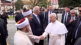 Papa, Sultanahmet Camii'ne girmeden ayakkabılarını da çıkardı. Ziyaret boyunca caminin müezzini Aşgın Tunca, Papa 14'üncü Leo'ya caminin tarihini ve mimarisini İngilizce olarak anlattı. Papa'nın Sultanahmet Camii turu yaklaşık 15 dakika sürdü ve ziyaret, yetkililerle yapılan kısa bir sohbetin ardından sona erdi. (DHA)