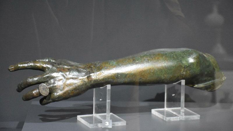 Birçok eserin ilk kez ziyaretçiye sunulduğunu belirten Müze Müdürü Gürbüz, bunlardan birinin de Roma Dönemi'ne ait, parmağında yüzük olan bronz bir kol olduğunu söyledi. Gürbüz, "Foça'da, denizden bulunmuş bir eserimiz. 1980 yılında müzemize getirilmiş. Restorasyon çalışması yapılıp, teşhire hazırlandı. 45 yıl sonra bu bronz kol sergiye alındı. Önemli bir yöneticiye ait olabilir. Başı olmadığı için kime ait olduğunu tespit edilememiş. Parmağında bir yüzük var, yaklaşık 2 bin yıllık bir eser" diye konuştu. Ziyaretçilere seslenen Gürbüz, "2 ay gibi kısa bir sürede çalışmaları tamamladık. Yeni teşhirimizi hazırladık, koyduk. Ziyaretçilerimizi bekliyoruz" dedi.(DHA)