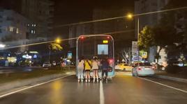 01:24Adliye önünde tekmeli-yumruklu kavga kameradaMuratpaşa ilçesindeki Işıklar ve Metin Kasapoğlu caddelerinde patenli 4 çocuk, KL 08 levhalı Lara ile Konyaaltı arasında sefer yapan halk otobüsünün arka paneline tutunarak uzun süre yolculuk yaptı. Hızlı olduğu görülen otobüsün arkasına tutunarak yaklaşık 2 kilometre giden gençlerin yolculuğu, görenleri korkuttu. Kendi canlarını ve trafiği tehlikeye sokan patenli gençler, diğer sürücülerin uyarılarına aldırış etmedi. Patenli gençler, bir süre sonra otobüsü bırakarak ara sokaklara girdi. Gençlerin patenli yolculuğu, sürücüler tarafından cep telefonuyla kayda alındı.