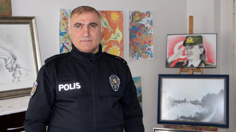 04:46Özel bakım merkezinde kalan engellinin darbedildiği iddiasıSamsun İl Emniyet Müdürlüğü Hassas Bölgeleri Koruma Şube Müdürlüğü’nde görevli ‘Hür Ressam’ lakaplı Hür Erdoğan, resim ve bağlama hobisi ile dikkat çekiyor. Evli ve 3 çocuk babası 28 yıldır polis memuru Erdoğan, Samsun, Trabzon, Denizli, Van, Ankara ve Bartın’da 20 resim sergisi açtı. Halk Eğitim Merkezi’nde de resim kursları veren Erdoğan, “Sanata yıllarımı harcadım. Mesleğimdeki izinli günlerimde fedakarlık yapıp sanat ile bütünleştim. Sanatın ruhuma ihtiyacı olduğunu hissettim. Stresli bir mesleğin yoğunluğunu ancak sanatla atabileceğimi düşündüm. Sanat, geniş bir derya. Bu deryanın içinde huzur ve rahatlama var. Sanatla uğraşan birinde kötü düşünceler barınamaz. Herkesin bir sanat dalı ile uğraşmasını isterdim” dedi.