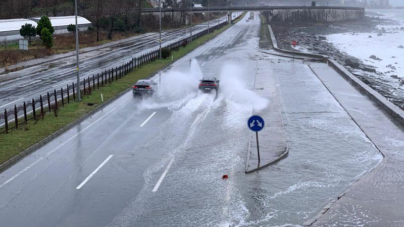 Rize'de dalgalar kayalıkları aşıp sahil yoluna ulaştı