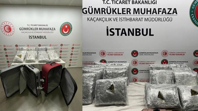 "Sabiha Gökçen Havalimanı Gümrük Müdürlüğüne bağlı Gümrük Muhafaza ekiplerince gerçekleştirilen iki ayrı operasyonda, bakanlık sistemleri üzerinden sürekli olarak yapılan risk analizinde Arnavutluk'tan gelen bir uçak ve yolcular detaylı incelemeye tabi tutuldu. Yapılan risk analizinde şüpheli olarak değerlendirilen 2 yolcu yakın takibe alındı. Şüpheli yolculara ait valizler x-ray taramasından geçirildi. Tarama sonucunda şüpheli yoğunluklu bölgeler tespit edildi. Narkotik dedektör köpeklerinin aşırı tepki verdiği valizler içerisine gizlenmiş halde 31 kilo 461 gram esrar ele geçirildi.