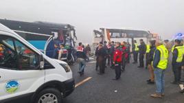 00:32Büyükçekmece'de kırmızı ışık ihlali kazaya neden oldu; çarpışma kameradaKaza, saat 04.30 sıralarında Kuzey Marmara Otoyolu'nun Sakarya Dağdibi mevkisinde meydana geldi. Aralarında 3 otobüs ve 1 TIR'ın da bulunduğu 7 araç zincirleme trafik kazasına karıştı. İhbar üzerine bölgeye çok sayıda itfaiye, 112 acil sağlık, polis ve jandarma ekibi sevk edildi. İlk belirlemelere göre kazada 10 kişi hayatını kaybederken, 59 kişi de yaralandı. Kaza nedeniyle yol trafiğe kapandı. Ekiplerin, kazaya müdahalesi sürüyor.