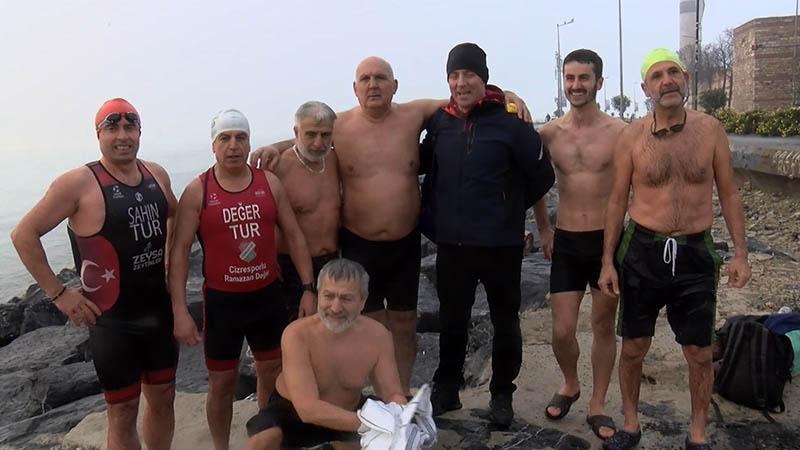 Grup üyesi Ramazan Değer ise " 365 gün denizdeyiz diyoruz. Şubat 'ın 1'inde kış mevsimi yüzme açılışımızı yaptık. Alışkanlığı olmayan insanlara kesinlikle tavsiye etmiyoruz. Buradan bulunan ilaç eczanede bulunamaz diyoruz. Spor sağlık deniz şifadır. " dedi. Konuşmaların ardından grup üyeleri hava sıcaklığı 1 dereceyi gösterirken, sıcaklığı 7,5 derece olarak ölçülen denize girdi uzun süre yüzdü.