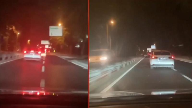 Sarıyer'de iki araç arasında yaşanan yol verme inatlaşması trafikteki diğer sürücüleri tehlikeye attı. O anlar cep telefonu kamerasına yansıdı.
