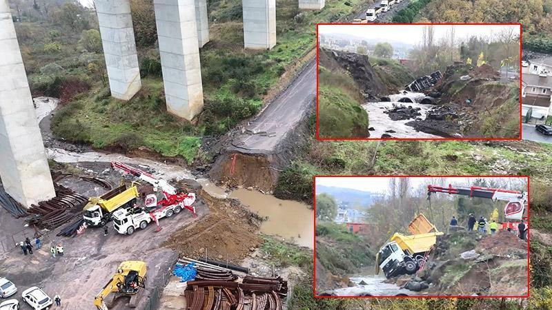 06:26Sarıyer'de yol çöktü; dereye düşen kamyon çıkarıldı