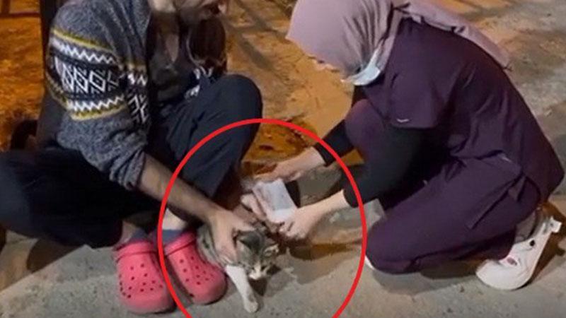 01:42Samsun’da Süper Loto talihlisi 105 milyon TL’lik büyük ikramiyeyi kazandı9 Kasım günü 15 Temmuz Mahallesi'ndeki Dicle Devlet Hastanesi Acil Servisi'nin kapısının öne gelip miyavlayan kedi, sağlık personeli tarafından fark edildi. Kedinin yanına gidene muayene eden sağlık çalışanları, ön ayağının üzerine basamadığını ve acı çektiğini gördü. Personel, sağlık malzemelerini getirerek kedinin bacağına atel taktı. Tedavisinin ardından kedi uzaklaşırken, o anlar cep telefonuyla kayda alındı, hastanenin güvenlik kameralarına yansıdı.