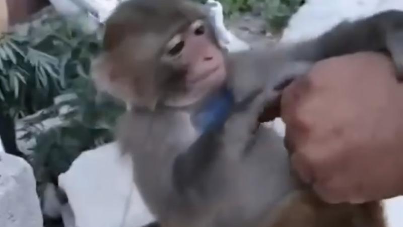 El konulan maymun, gerekli kontrollerin ardından doğal yaşam alanına uygun bir merkeze teslim edilmek üzere koruma altına alındı.