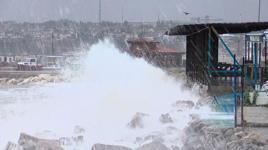 13:11Çöp poşetinde cesedi bulunan Sümeyye’nin eşi, bindiği taksiyi bulup cinayetin işlendiği siteye gitmişİstanbul’da etkili olan fırtına dün akşam saatlerinden itibaren İstanbul’un farklı bölgelerinde şiddetini artırdı. Yaşanan fırtınayla Silivri’de bir iş yerinin çatısı uçtu; metrelerce yükeklikte dalgalar oluştu. Piri Mehmet Paşa Mahallesi’nde sahil şeridi dalgaların yükselmesi nedeniyle sular altında kaldı. Fırtınanın etkisiyle kaldırım taşları yerinden söküldü. Sahil şeridinde bulunan dükkanların masa ve sandalyeleri denize sürüklendi. Deniz kenarında bulunan işletmelerde maddi hasar meydana gelirken, denizin rengi kahverengiye döndü. Silivri’ye fırtınanın verdiği zarar günün aydınlanmasıyla ortaya çıktı. Kaldırım taşlarının yerinden sökülüp sürüklendiği, çocuk parkının kullanılamaz hale geldiği görüldü.