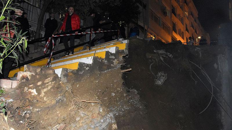 Olay, Eskişehir Mahallesi Eşref Efendi Sokak'ta 18.10 sıralarında meydana geldi. İki bina arasındaki inşaatın temelini kazmak için kullanılan iş makinesinin çalışmalar tamamlandıktan sonra çıkarılması için sokağa vinç getirildi. Vinç inşaat alanına yaklaştığı sırada, inşaatın istinat duvarı büyük gürültüyle yıkıldı. Bu sırada yaşanan toprak kaymasının ardından sokaktaki merdivenin de bir kısmı çöktü. Duvarın yıkılması sırasında elektrik hattı zarar görürken, sokağın yarısı elektriksiz kaldı. Sokak sakinlerini sokağa döken çökmenin ardından olay yerine itfaiye ve polis ekipleri sevk edildi. Merdivenin altındaki toprak kaymasının devam etmesi nedeniyle inşaatın bulunduğu alan zabıta tarafından güvenlik şeridi ve demir barikatla kapatıldı. Bu sırada, inşaatın müteahhidi olduğu söylenen bir kişi ile şikayetçi olacaklarını belirten sokak sakinleri arasında tartışma yaşandı. Tartışma zabıtanın araya girmesiyle sona erdi.