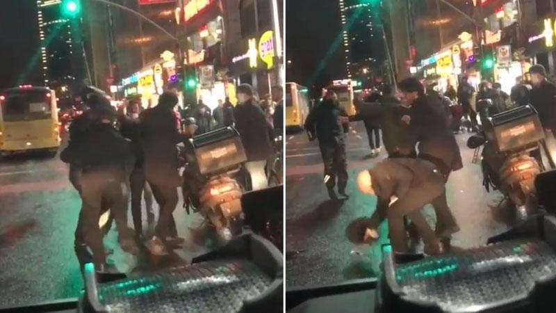 01:09Oyuncu Serkan Keskin'in babası İzmit'te toprağa verildiOlay, dün akşam saatlerinde Şişli Mecidiyeköy'de meydana geldi. İddialara göre, motokurye ile bir araç sürücüsü arasında yol verme kavgası çıktı. Kavgada tekme, yumruk, kemer ve motosiklet kaskı kullanıldı. Bu sırada araç sürücüsü, motokuryenin ele geçirdiği kaskını yere vurarak kırdı. Yaşanan o anlar bir sürücünün cep telefonu kamerasına yansıdı.